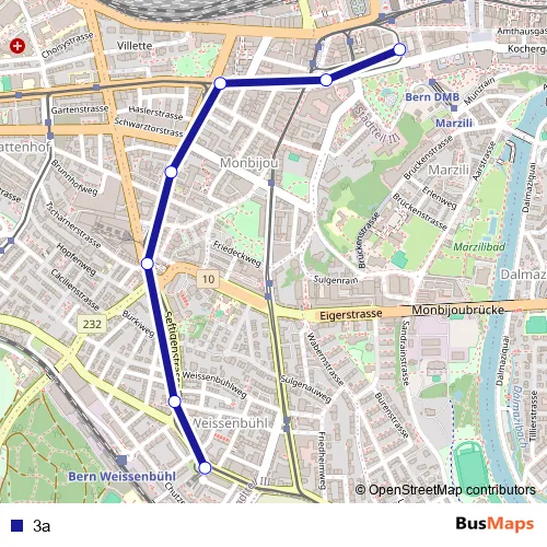 The first stop of the 3a bus route is Bern, Bahnhof and the last stop is Bern, Weissenbühl (Tram). 3a is operational during täglich.