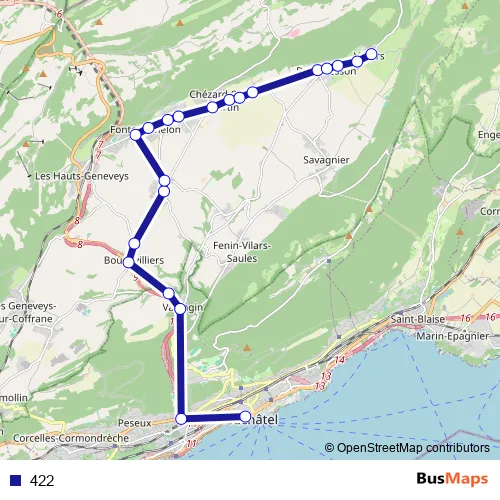 Route des Fontaines - Grand'Rue - Les Crêts - Grand-Rue - Crêt Debély - Rue Frédéric Soguel - Rue Vy-du-Mottié - Grand-Rue - Tranchée de Boudevilliers - Route de la Sauge - Route de Neuchâtel - Rue du Vauseyon - Place Pury