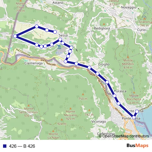 Piazzale della Stazione - Lungo Tresa - Ronco Regina - Strada Cantonale - Via Cantonale - Via Boscioro - Via Monteggio - Via Termine - Via Lovrón
