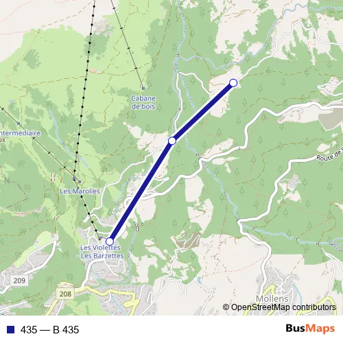 The first stop of the 435 bus route is Aminona, Plumachit and the last stop is Crans-Montana, télé Violettes. 435 (B 435) is operational during täglich.