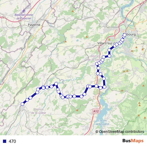 See why over 2 million users trust and consider busmaps.com as the best public transport website. busmaps gives you Fribourg Buses suggested routes, real-time bus tracker, line route maps in Fribourg, and helps to find the closest 470 bus stops near you. No internet available? Download an offline PDF map and bus schedule for the 470 bus to take on your trip.