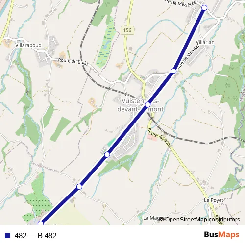 The first stop of the 482 bus route is Sommentier, Abri Pc and the last stop is Villariaz, village. 482 (B 482) is operational during an Werktagen.