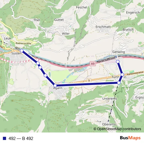 See why over 2 million users trust and consider busmaps.com as the best public transport website. busmaps gives you Leuk Buses suggested routes, real-time bus tracker, line route maps in Leuk, and helps to find the closest 492 bus stops near you. No internet available? Download an offline PDF map and bus schedule for the 492 bus to take on your trip.
