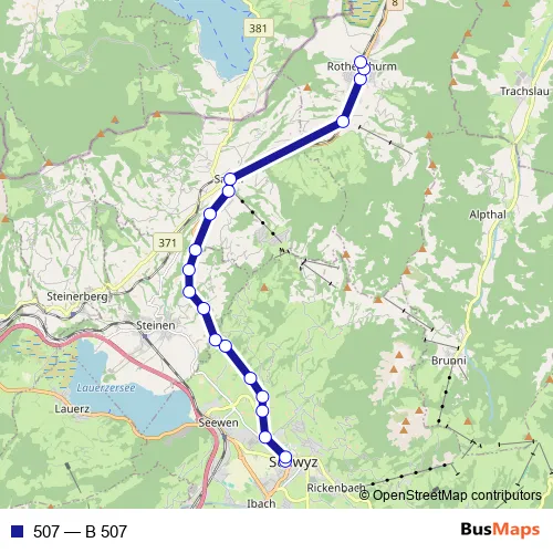 See why over 2 million users trust and consider busmaps.com as the best public transport website. busmaps gives you Schwyz Buses suggested routes, real-time bus tracker, line route maps in Schwyz, and helps to find the closest 507 bus stops near you. No internet available? Download an offline PDF map and bus schedule for the 507 bus to take on your trip.