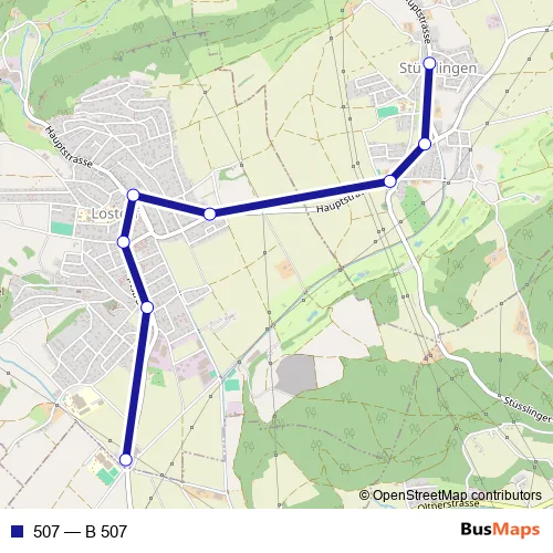 The first stop of the 507 bus route is Lostorf, Kreisschule and the last stop is Stüsslingen, Jura. 507 (B 507) is operational during am Wochenende.