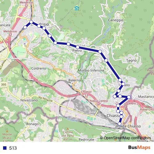 Via Giuseppe Motta - Viale Alessandro Volta - Viale Avvocato Carlo Stoppa - Via Francesco Soave - Via del Breggia - Via Pizzamiglio - Via Gen. Guisan - Via Stefano Franscini - Via San Martino - Lecch - ala Crus - Via Landamano G. B. Maggi - Via alla Peschiera - Via Pozzi-Artisti - Via Industria - Via Luigi Lavizzari - Via Stefano Franscini
