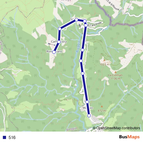 The first stop of the 516 bus route is Muggio, Paese and the last stop is Roncapiano, Paese. 516 is operational during täglich.