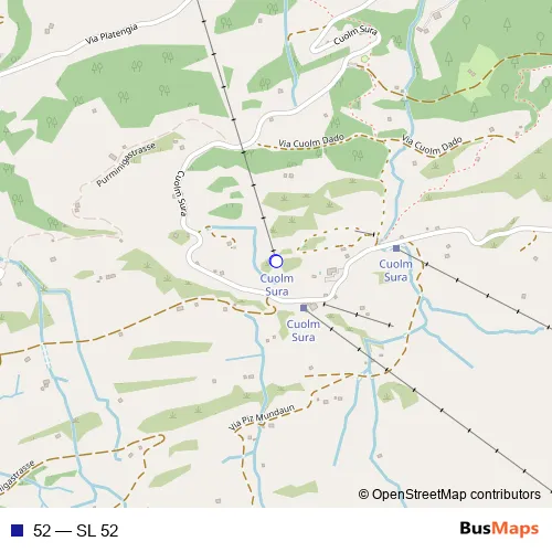 The first stop of the 52 cable-car route is Piz Mundaun and the last stop is Cuolm Sura (Valata). 52 (SL 52) is operational during täglich.