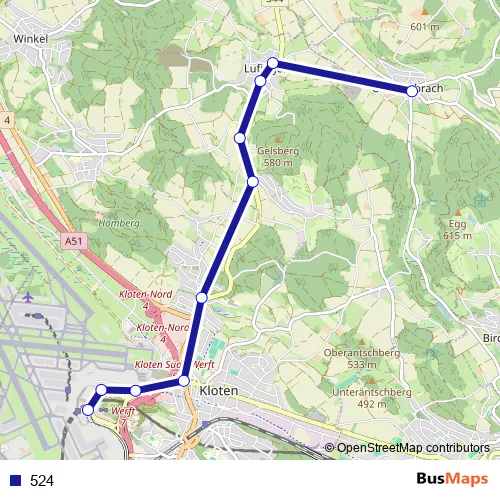 See why over 2 million users trust and consider busmaps.com as the best public transport website. busmaps gives you Buelach Buses suggested routes, real-time bus tracker, line route maps in Buelach, and helps to find the closest 524 bus stops near you. No internet available? Download an offline PDF map and bus schedule for the 524 bus to take on your trip.
