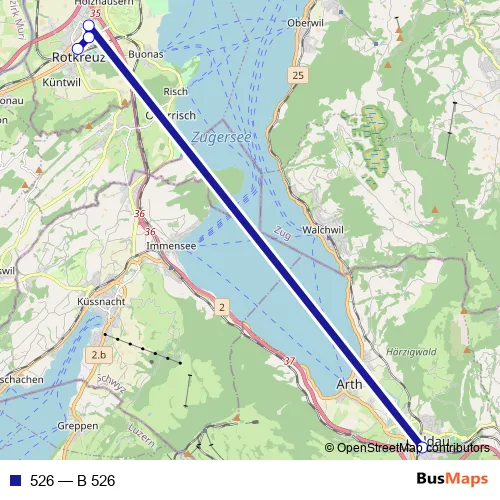 The first stop of the 526 bus route is Arth-Goldau, Bahnhof and the last stop is Rotkreuz, Bahnhof Nord. 526 (B 526) is operational during an Werktagen.
