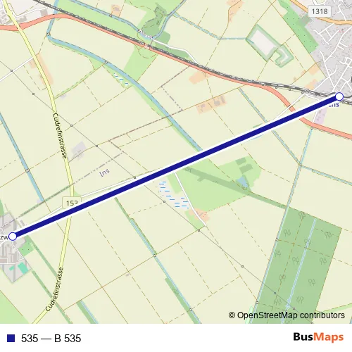 The first stop of the 535 bus route is Ins, Witzwil and the last stop is Ins, Bahnhof. 535 (B 535) is operational during an Werktagen.