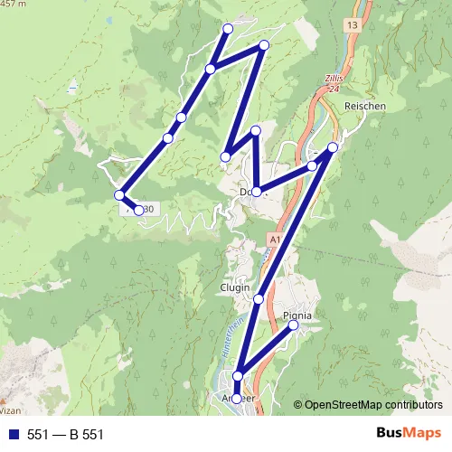 The first stop of the 551 bus route is Andeer, posta and the last stop is Wergenstein, Dorf. 551 (B 551) is operational during täglich.