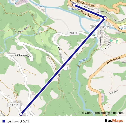 See why over 2 million users trust and consider busmaps.com as the best public transport website. busmaps gives you Tiefencastel Buses suggested routes, real-time bus tracker, line route maps in Tiefencastel, and helps to find the closest 571 bus stops near you. No internet available? Download an offline PDF map and bus schedule for the 571 bus to take on your trip.