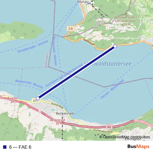 The first stop of the 6 ferry route is Beckenried Niederdorf (Fähre) and the last stop is Gersau Förstli (Fähre). 6 (FAE 6) is operational during täglich.