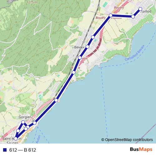 The first stop of the 612 bus route is Cortaillod, Cort'Agora and the last stop is Gorgier-St-Aubin, gare. 612 (B 612) is operational during täglich.