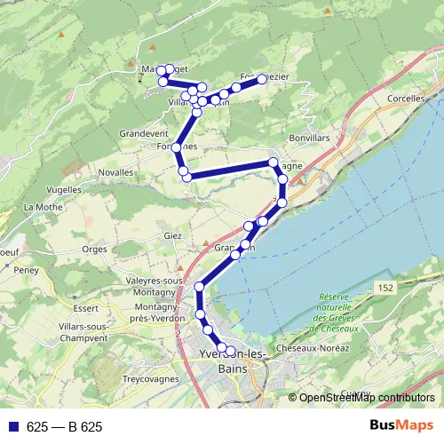 See why over 2 million users trust and consider busmaps.com as the best public transport website. busmaps gives you Yverdon-les-Bains Buses suggested routes, real-time bus tracker, line route maps in Yverdon-les-Bains, and helps to find the closest 625 bus stops near you. No internet available? Download an offline PDF map and bus schedule for the 625 bus to take on your trip.