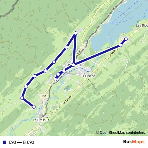 The first stop of the 690 bus route is Le Brassus, Tribillet and the last stop is Les Bioux, Avj. 690 (B 690) is operational during an Werktagen.