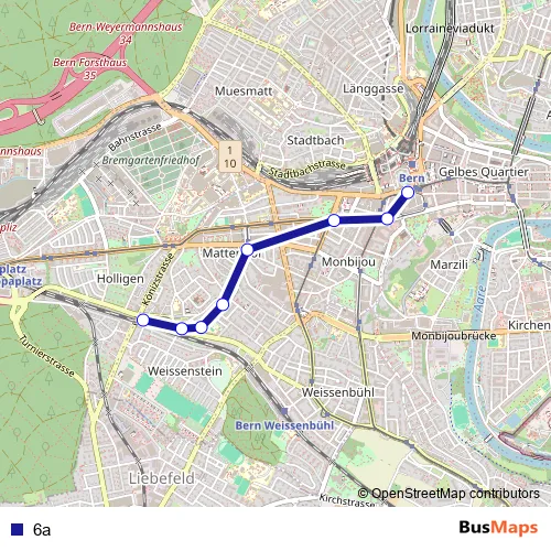 See why over 2 million users trust and consider busmaps.com as the best public transport website. busmaps gives you Bern Buses suggested routes, real-time bus tracker, line route maps in Bern, and helps to find the closest 6a bus stops near you. No internet available? Download an offline PDF map and bus schedule for the 6a bus to take on your trip.