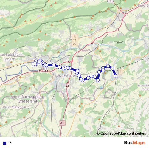See why over 2 million users trust and consider busmaps.com as the best public transport website. busmaps gives you Solothurn Buses suggested routes, real-time bus tracker, line route maps in Solothurn, and helps to find the closest 7 bus stops near you. No internet available? Download an offline PDF map and bus schedule for the 7 bus to take on your trip.