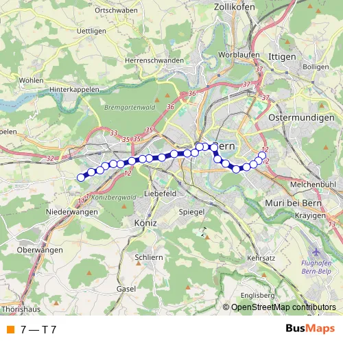 See why over 2 million users trust and consider busmaps.com as the best public transport website. busmaps gives you Bern Trams suggested routes, real-time bus tracker, line route maps in Bern, and helps to find the closest 7 tram stops near you. No internet available? Download an offline PDF map and bus schedule for the 7 tram to take on your trip.