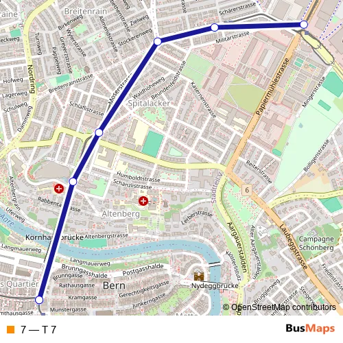 See why over 2 million users trust and consider busmaps.com as the best public transport website. busmaps gives you Bern Trams suggested routes, real-time bus tracker, line route maps in Bern, and helps to find the closest 7 tram stops near you. No internet available? Download an offline PDF map and bus schedule for the 7 tram to take on your trip.