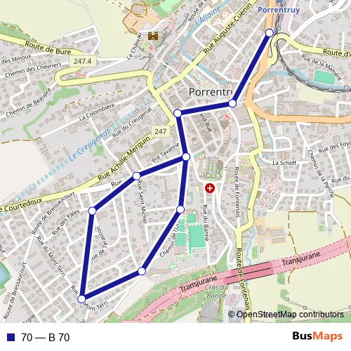 See why over 2 million users trust and consider busmaps.com as the best public transport website. busmaps gives you Porrentruy Buses suggested routes, real-time bus tracker, line route maps in Porrentruy, and helps to find the closest 70 bus stops near you. No internet available? Download an offline PDF map and bus schedule for the 70 bus to take on your trip.