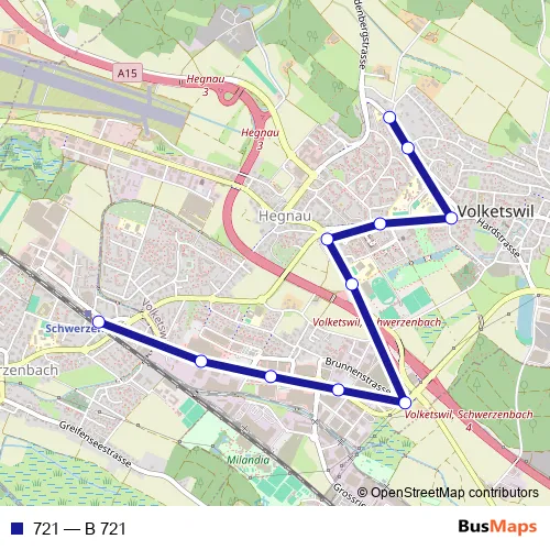 The first stop of the 721 bus route is Volketswil, Eichstrasse and the last stop is Schwerzenbach ZH, Bahnhof. 721 (B 721) is operational during täglich.