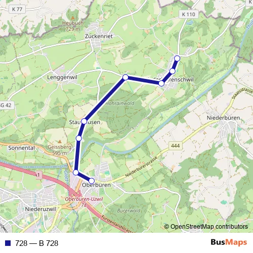 The first stop of the 728 bus route is Niederhelfenschwil, Neudorf and the last stop is Oberbüren, Zentrum. 728 (B 728) is operational during täglich.