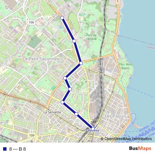 See why over 2 million users trust and consider busmaps.com as the best public transport website. busmaps gives you Geneve Buses suggested routes, real-time bus tracker, line route maps in Geneve, and helps to find the closest 8 bus stops near you. No internet available? Download an offline PDF map and bus schedule for the 8 bus to take on your trip.