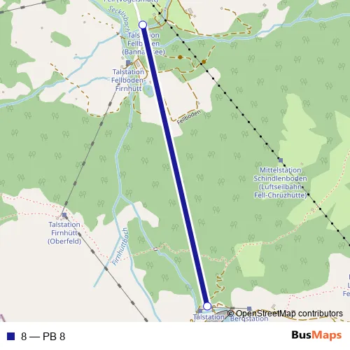 The first stop of the 8 cable-car route is Fellboden and the last stop is Bannalpsee. 8 (PB 8) is operational during täglich.
