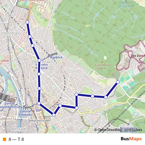 See why over 2 million users trust and consider busmaps.com as the best public transport website. busmaps gives you Zuerich Trams suggested routes, real-time bus tracker, line route maps in Zuerich, and helps to find the closest 8 tram stops near you. No internet available? Download an offline PDF map and bus schedule for the 8 tram to take on your trip.