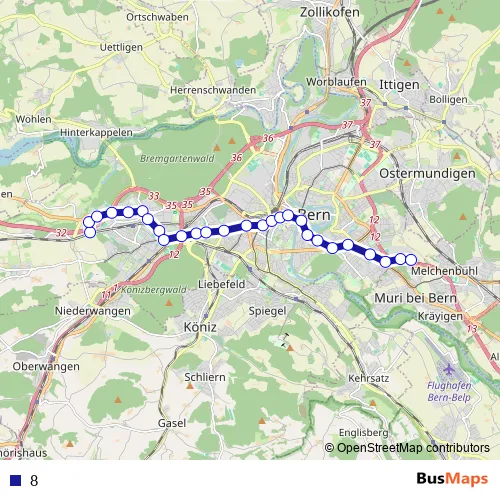 See why over 2 million users trust and consider busmaps.com as the best public transport website. busmaps gives you Bern Trams suggested routes, real-time bus tracker, line route maps in Bern, and helps to find the closest 8 tram stops near you. No internet available? Download an offline PDF map and bus schedule for the 8 tram to take on your trip.