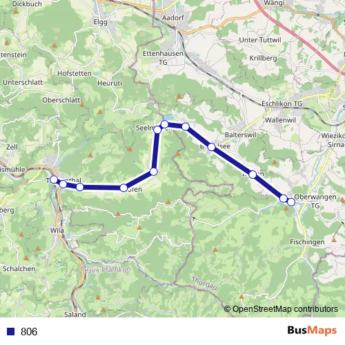 The first stop of the 806 bus route is Turbenthal, Bahnhof and the last stop is Dussnang, Kirche/Klinik. 806 is operational during täglich.