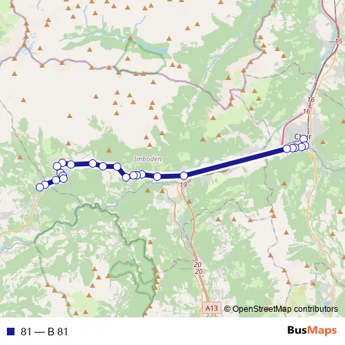 See why over 2 million users trust and consider busmaps.com as the best public transport website. busmaps gives you Chur Buses suggested routes, real-time bus tracker, line route maps in Chur, and helps to find the closest 81 bus stops near you. No internet available? Download an offline PDF map and bus schedule for the 81 bus to take on your trip.