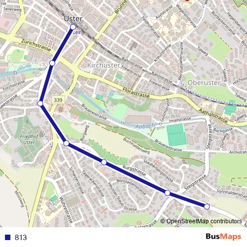See why over 2 million users trust and consider busmaps.com as the best public transport website. busmaps gives you Uster Buses suggested routes, real-time bus tracker, line route maps in Uster, and helps to find the closest 813 bus stops near you. No internet available? Download an offline PDF map and bus schedule for the 813 bus to take on your trip.