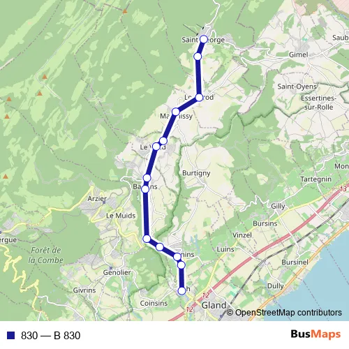 The first stop of the 830 bus route is Vich, poste and the last stop is St-George, village. 830 (B 830) is operational during am Wochenende.