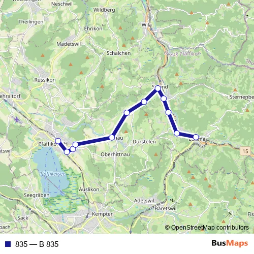 See why over 2 million users trust and consider busmaps.com as the best public transport website. busmaps gives you Pfaeffikon Buses suggested routes, real-time bus tracker, line route maps in Pfaeffikon, and helps to find the closest 835 bus stops near you. No internet available? Download an offline PDF map and bus schedule for the 835 bus to take on your trip.