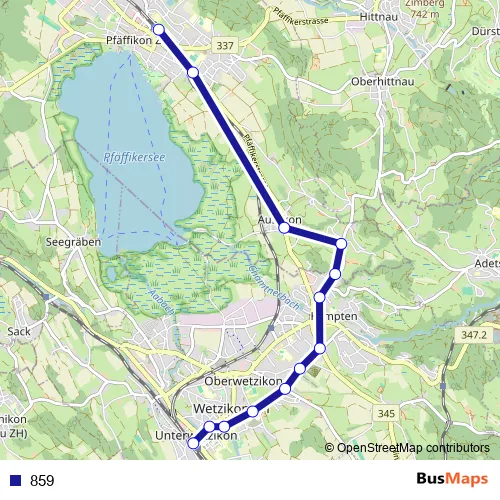 The first stop of the 859 bus route is Pfäffikon ZH, Bahnhof and the last stop is Wetzikon ZH, Bahnhof. 859 is operational during an Werktagen.