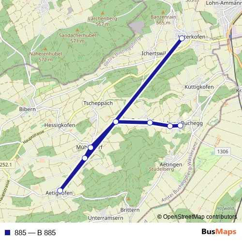 The first stop of the 885 bus route is Buchegg, Schloss/Dorf and the last stop is Lüterkofen, Schulhaus. 885 (B 885) is operational during an Werktagen.