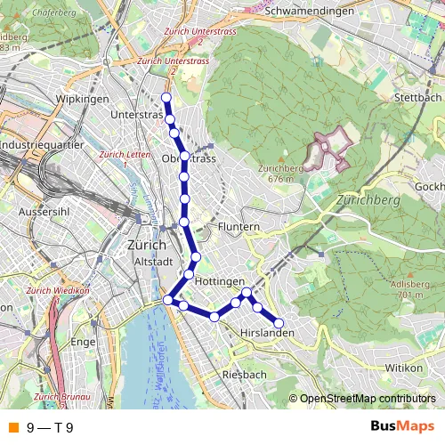 See why over 2 million users trust and consider busmaps.com as the best public transport website. busmaps gives you Zuerich Trams suggested routes, real-time bus tracker, line route maps in Zuerich, and helps to find the closest 9 tram stops near you. No internet available? Download an offline PDF map and bus schedule for the 9 tram to take on your trip.