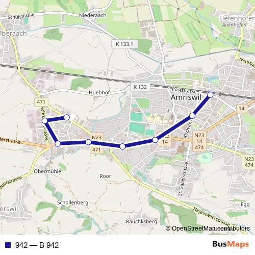 See why over 2 million users trust and consider busmaps.com as the best public transport website. busmaps gives you Amriswil Buses suggested routes, real-time bus tracker, line route maps in Amriswil, and helps to find the closest 942 bus stops near you. No internet available? Download an offline PDF map and bus schedule for the 942 bus to take on your trip.