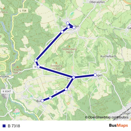 Is there a B 7318 bus stop near me?