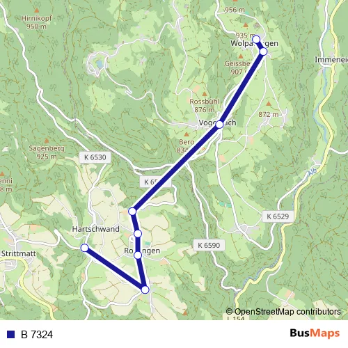 The first stop of the B 7324 bus route is Wolpadingen and the last stop is Hartschwand, Höllbachhof. B 7324 is operational during an Werktagen.