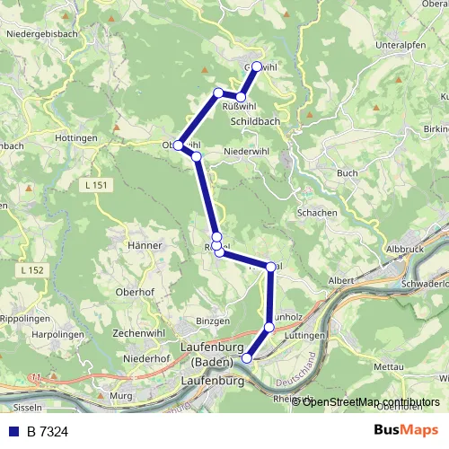 See why over 2 million users trust and consider busmaps.com as the best public transport website. busmaps gives you Laufenburg Buses suggested routes, real-time bus tracker, line route maps in Laufenburg, and helps to find the closest B 7324 bus stops near you. No internet available? Download an offline PDF map and bus schedule for the B 7324 bus to take on your trip.