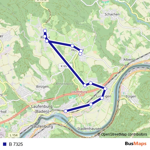 See why over 2 million users trust and consider busmaps.com as the best public transport website. busmaps gives you Laufenburg Buses suggested routes, real-time bus tracker, line route maps in Laufenburg, and helps to find the closest B 7325 bus stops near you. No internet available? Download an offline PDF map and bus schedule for the B 7325 bus to take on your trip.