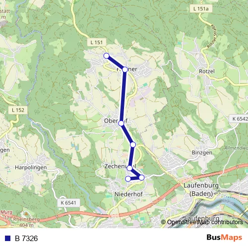 See why over 2 million users trust and consider busmaps.com as the best public transport website. busmaps gives you Laufenburg Buses suggested routes, real-time bus tracker, line route maps in Laufenburg, and helps to find the closest B 7326 bus stops near you. No internet available? Download an offline PDF map and bus schedule for the B 7326 bus to take on your trip.