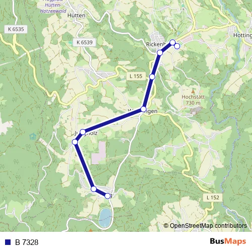 The first stop of the B 7328 bus route is Rickenbach (D), Abzw Egg and the last stop is Rickenbach (D), Schule. B 7328 is operational during an Werktagen.