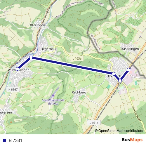 The first stop of the B 7331 bus route is Wutöschingen, Gms and the last stop is Erzingen (Baden), Bahnhof. B 7331 is operational during an Werktagen.