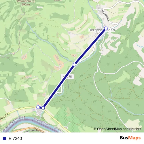 The first stop of the B 7340 bus route is Hohentengen, Guggenmühle and the last stop is Bergöschingen. B 7340 is operational during an Werktagen.