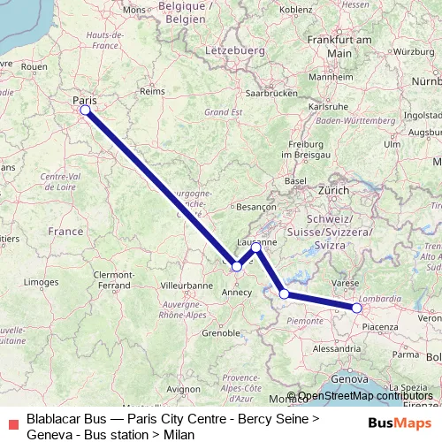 Bus Blablacar Bus - Paris City Centre - Bercy Seine > Geneva - Bus station > Milan in Aosta: Stops & Timetable